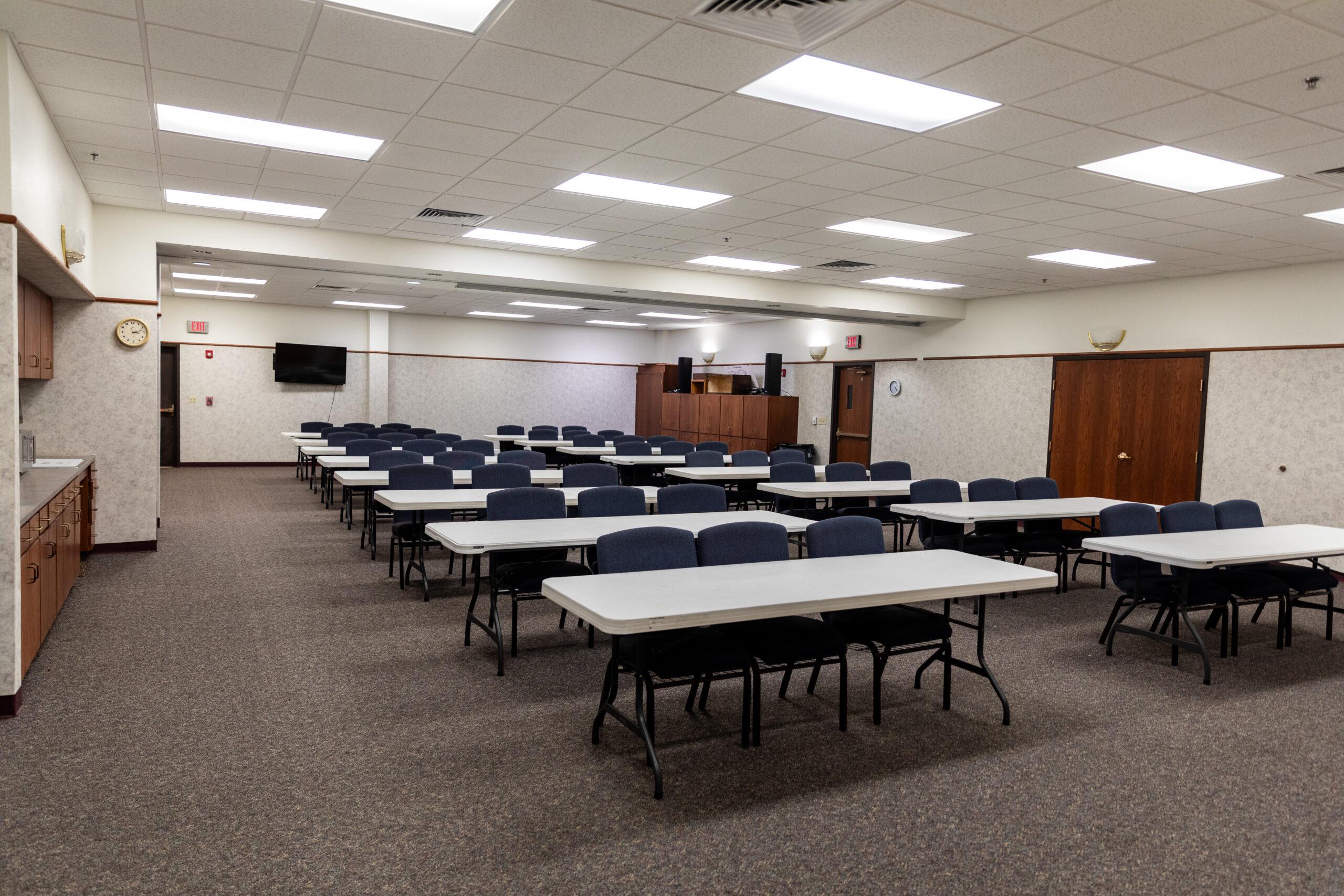 Seating for up to 150 guests. Includes tables, chairs, linens, and a/v.