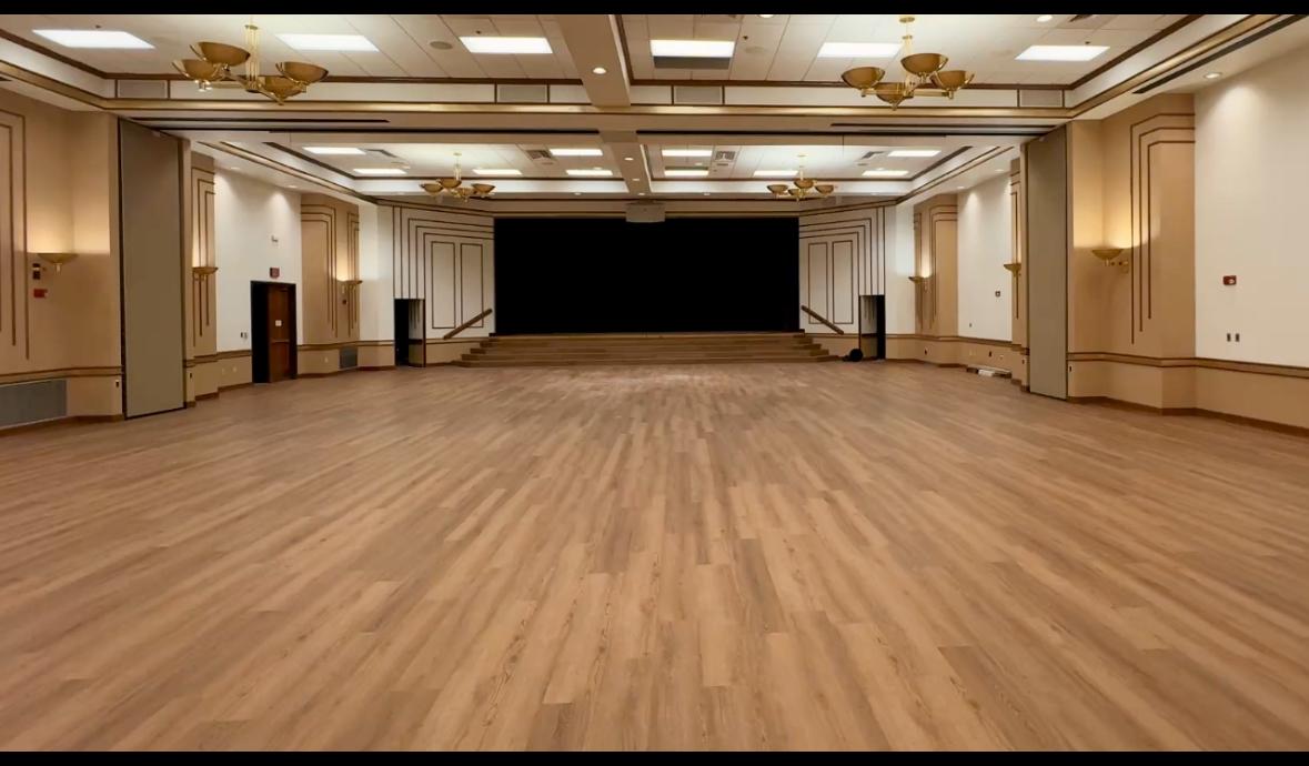 Seating for up to 300 guests. Includes tables, chairs, linens, a kitchen, a full theater stage, sound, lighting, and a/v.